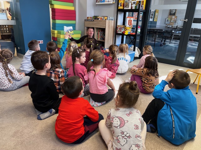 5 marca nasze przedszkolaki wybrały się na wycieczkę do Biblioteki Miejskiej przy ul. Powstańców Wielkopolskich 3. Na miejscu dzieci wysłuchały ciekawej książki czytanej przez panią bibliotekarkę. Podczas czytania pani zadawała pytania dotyczące tekstu, a przedszkolaki chętnie odpowiadały i dzieliły się swoimi spostrzeżeniami. To była doskonała okazja do rozwijania wyobraźni i rozmowy o przeczytanej przygodzie. Po wspólnym czytaniu przyszedł czas na swobodną zabawę oraz oglądanie książek.