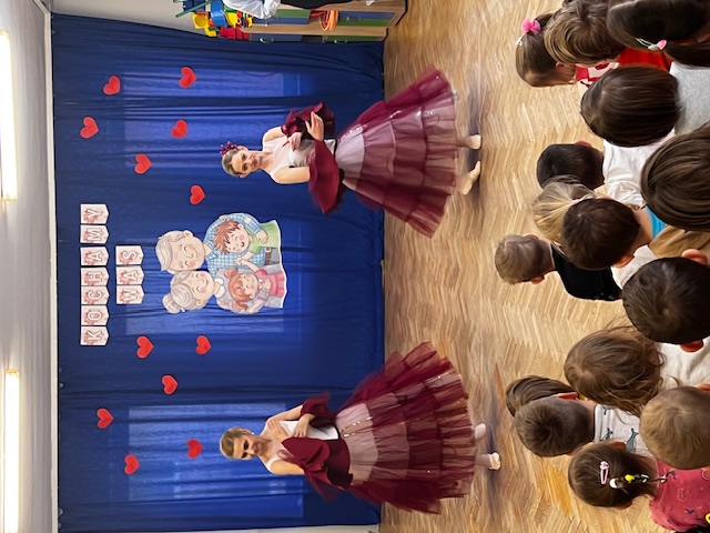 W piątek, 23 stycznia, w naszym przedszkolu odbył się występ baletowy pt. „Tańce z baśni”. Na scenie zaprezentowały się prawdziwe baletnice w pięknych, kolorowych strojach, zachwycając dzieci gracją i lekkością tańca. Podczas przedstawienia na scenę zostały zaproszone również przedszkolaki, które miały okazję poznać podstawowe kroki baletowe, wykonując proste ruchy według instrukcji baletnic. Było to radosne i inspirujące spotkanie ze światem tańca.