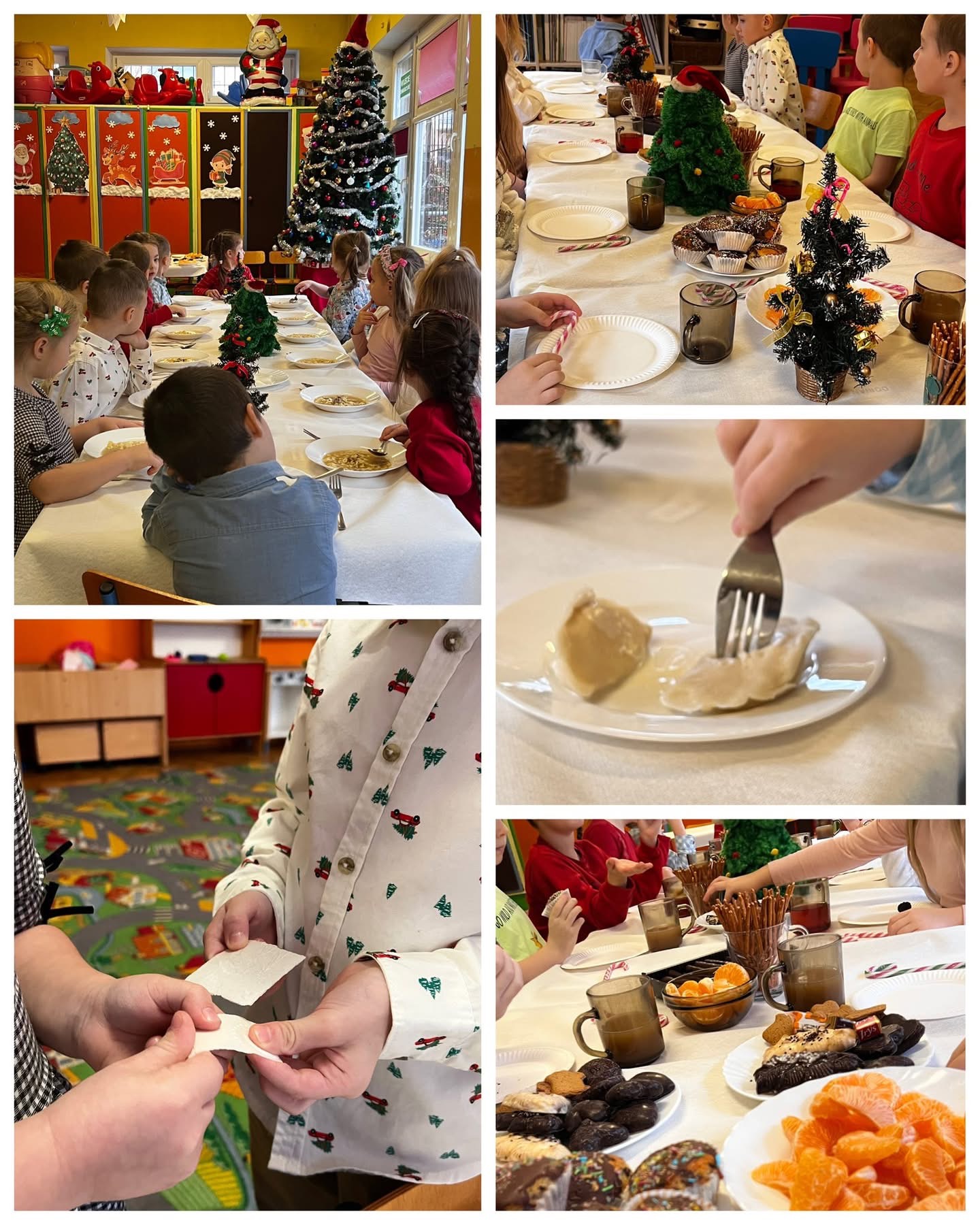 18 grudnia w naszym przedszkolu zapanowała wyjątkowo ciepła i świąteczna atmosfera. Przy wspólnym wigilijnym stole, wśród zapachu pierników i blasku choinkowych światełek, przedszkolaki składały sobie życzenia, dzieliły się radością i wspólnie kolędowały.